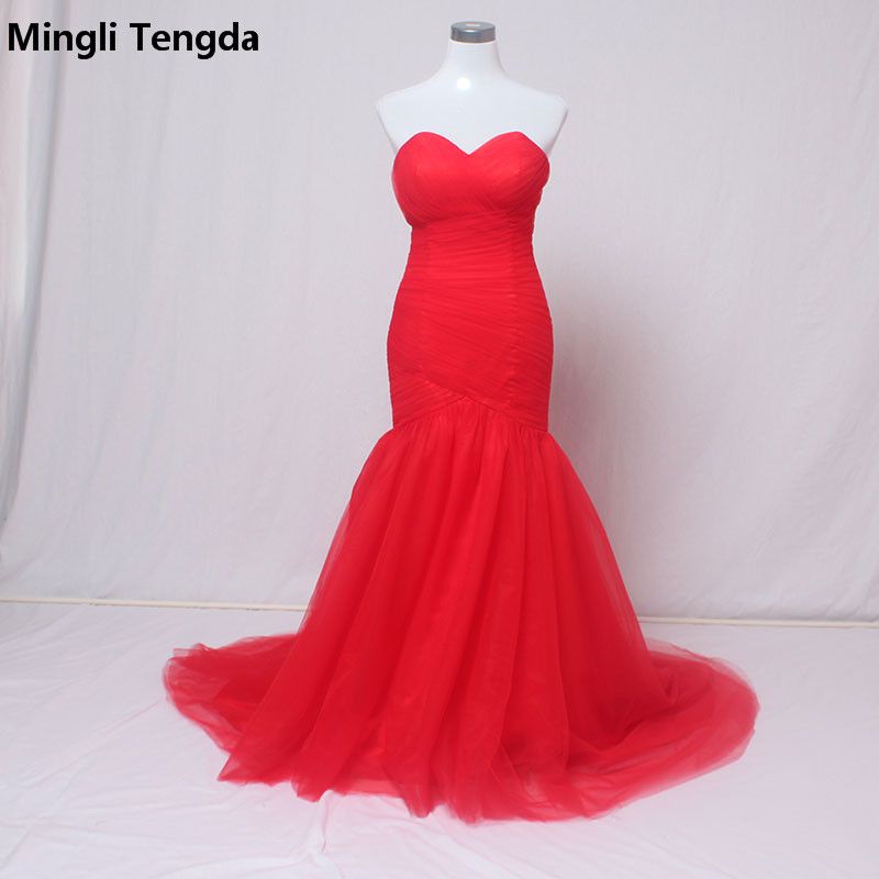 2018 New Soft Tulle Wedding Dresses Sweetheart Simple Red Wedding Mermaid Dress Hand Pleated Robe Soiree Mingli Tengda Plus Size Bride Gowns Mermaid Wedding Dress With Lace Mermaid Wedding Dresses For Sale Red Wedding Dress Simple