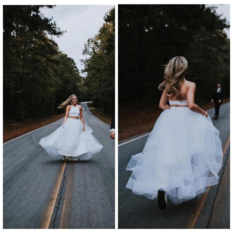 Discount Rustic Jewel Neck Wedding Dress With Vest Top Tiered Simple Wedding Dress Rustic