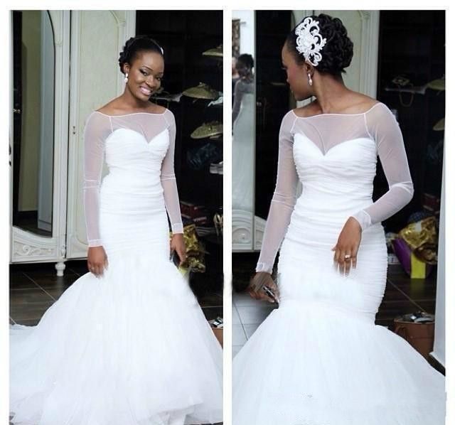 2019 African Black Women Simple Mermaid Wedding Dress Long Sleeve Wedding Dress For Black Woman