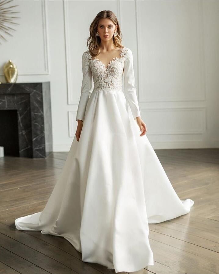 Lisa Moon Women S Simple Satin Long Sleeve Wedding Dress Sexy Wedding Dress Simple Satin
