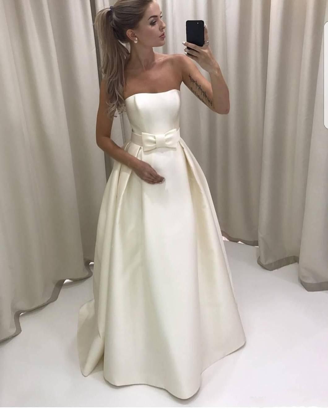 Simple Strapless Pleated Satin Fit And Flare Wedding Dress With Wedding Dress Simple Strapless