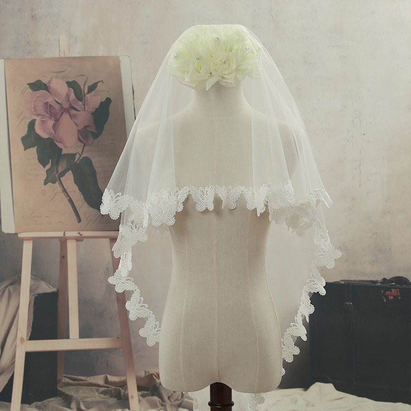 2020 New Bridal Wedding Dress Korean Style Short Lace Butterfly Simple Veil Shopee Malaysia Wedding Dress Simple Veil