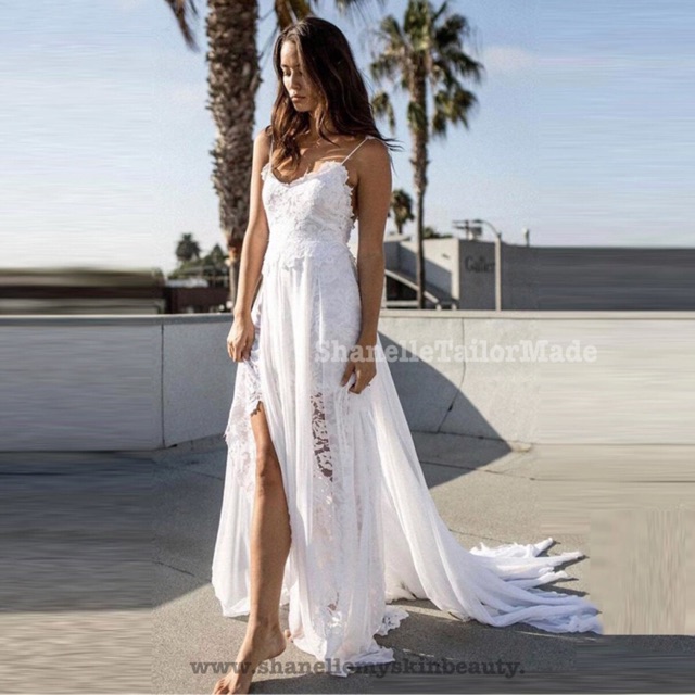 Beach Wedding Dress Sexy Bohemian Dress Bridal Gown Chiffon Lace Wedding Dress Xxs