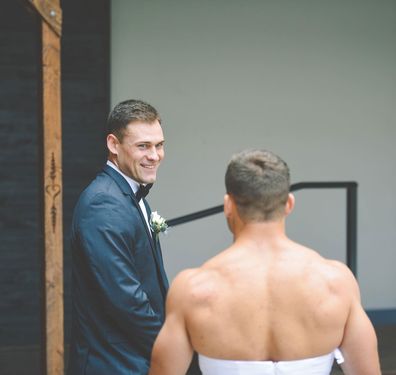 Bride Pranks Groom With Best Man Wearing A Wedding Dress 9honey Wedding Dresses Man